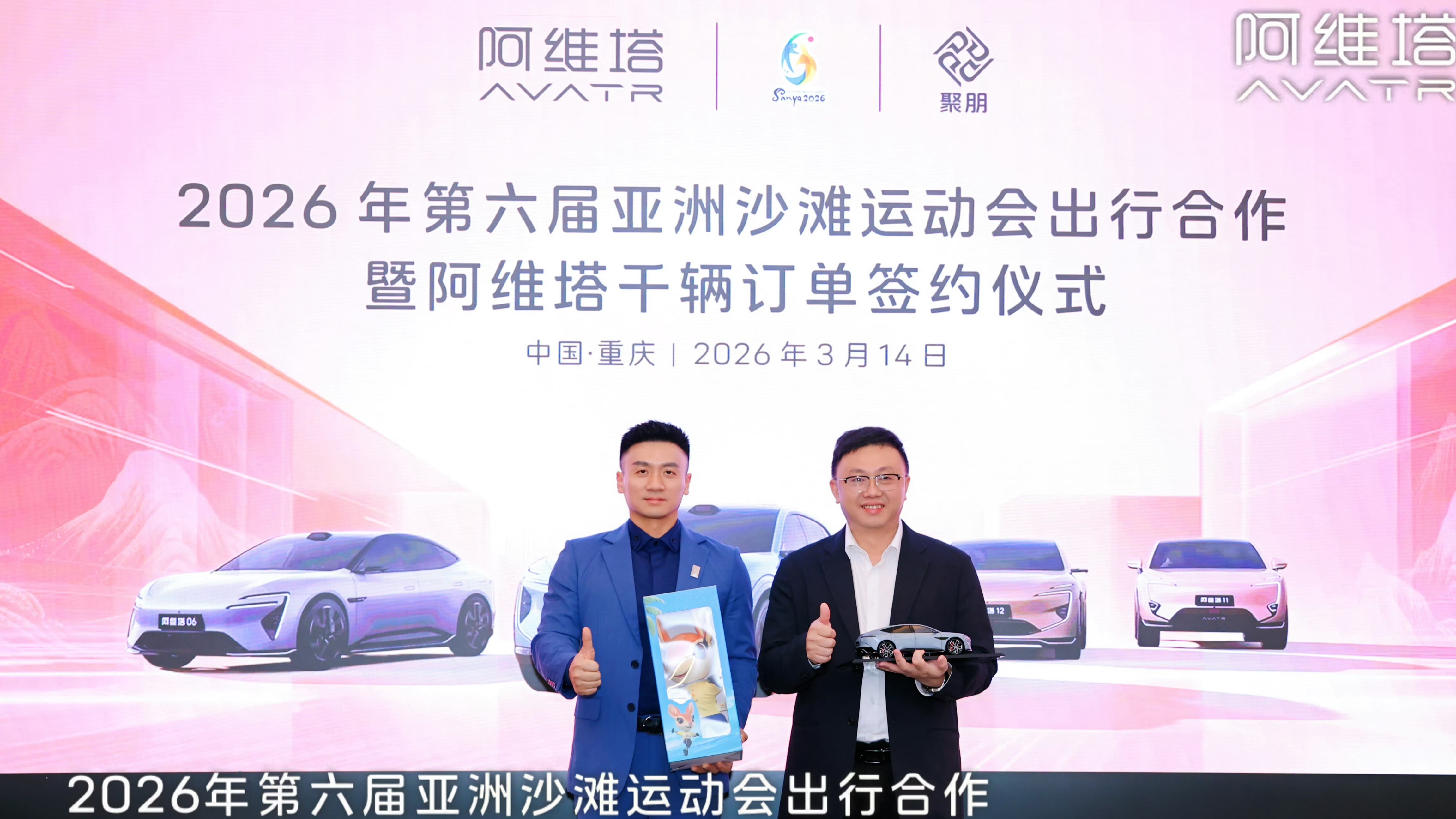 3月14日,2026年第六届亚洲沙滩运动会出行合作暨阿维塔千辆订单签约仪式在重庆举行。此次签约,标志着阿维塔凭借硬核实力正式成为这场重大洲际赛事的交通保障服务提供商,开启了中国品牌与国际顶级赛事深度合