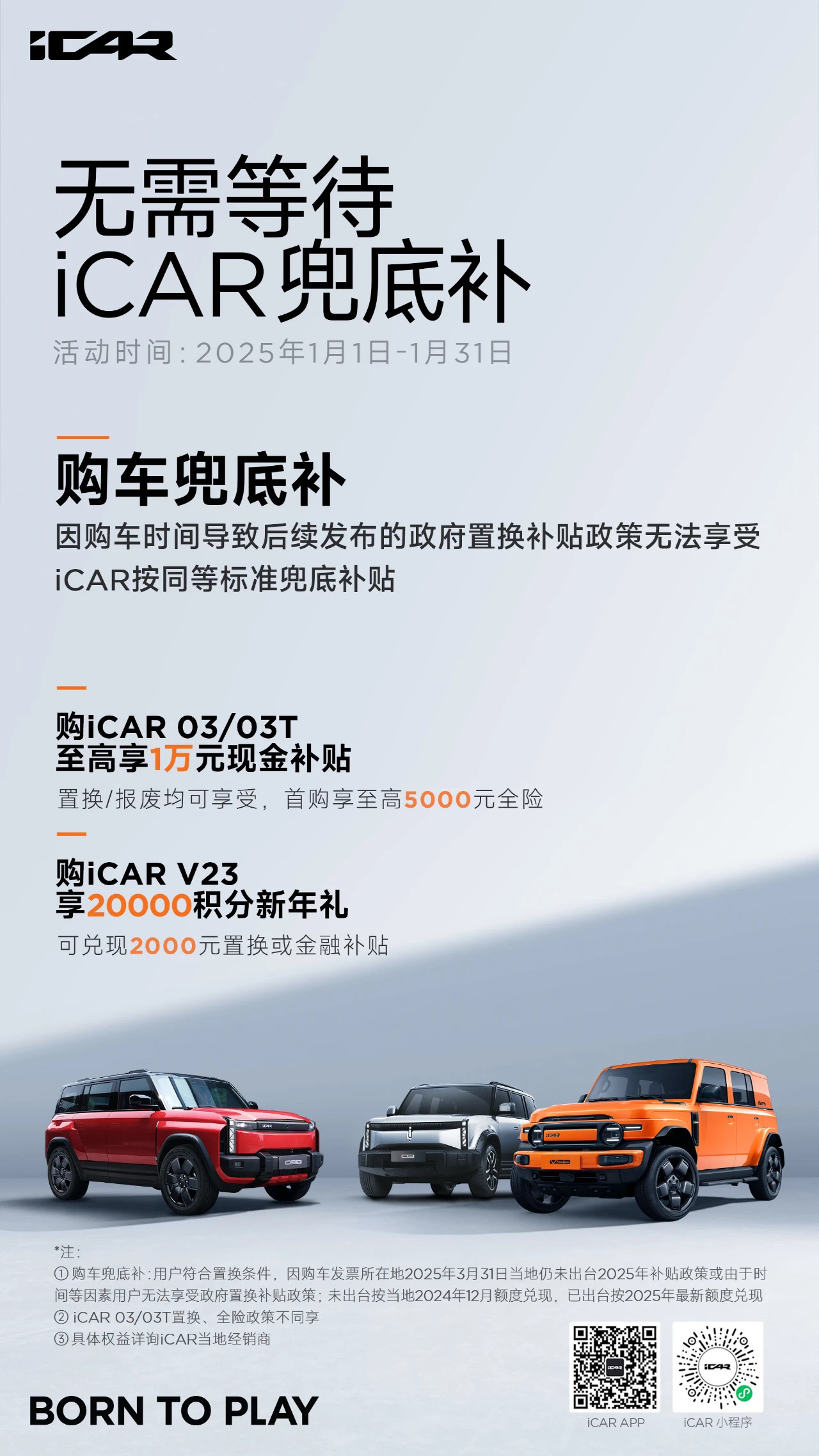 新“国补”加持,再享多重购车权益,iCAR V23综合优惠至高2.2万