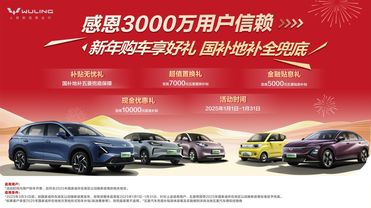 感恩3000万用户信赖,新年购五菱享四重好礼,国补地补全兜底!