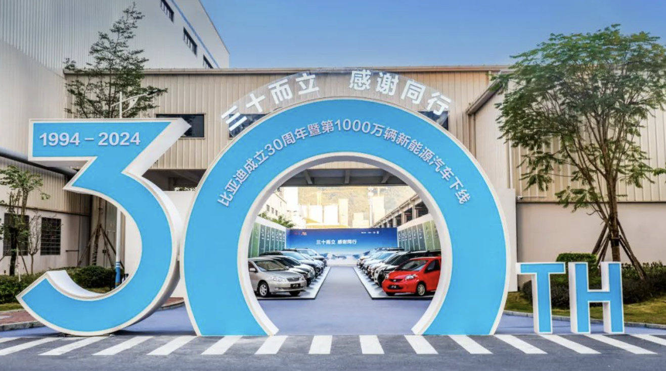 比亚迪成立30周年之际 成为全球首家达成第1000万辆新能源汽车下线的车企