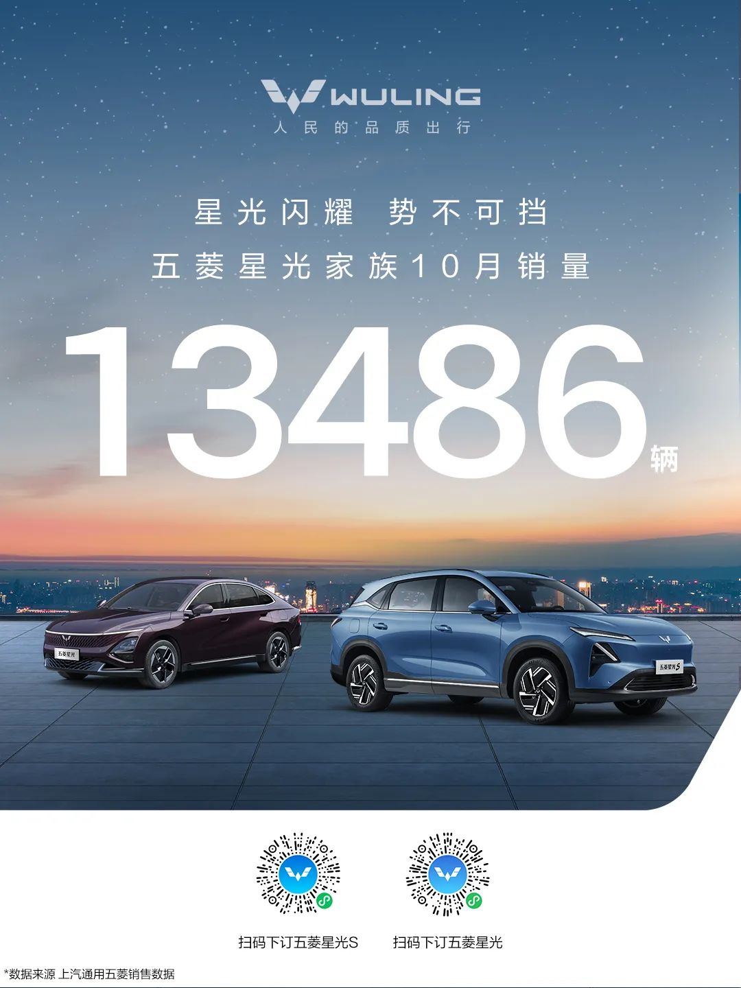 五菱星光家族在10月的销售表现确实令人瞩目,共计热销13486辆,这一成绩不仅彰显了其强大的市场竞争力,也进一步巩固了五菱汽车在新能源市场的地位。五菱星光家族的热销并非偶然,而是得益于其卓越的产品力和