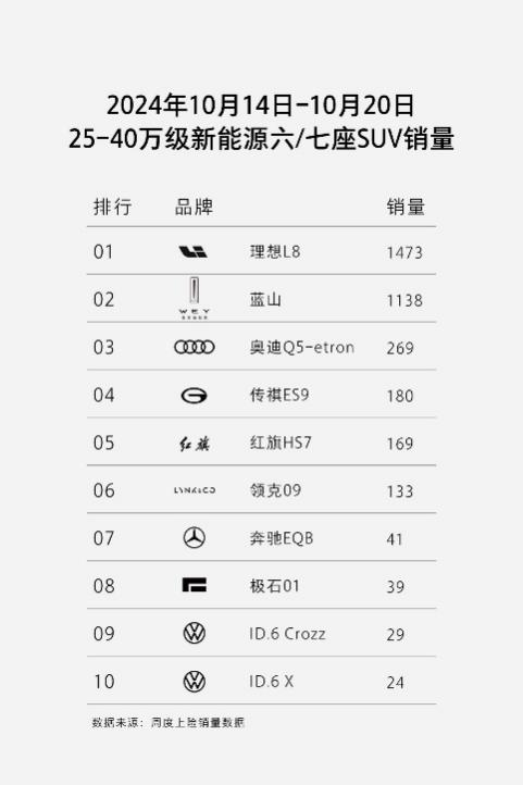 自古有“长江后浪推前浪”,但如果前浪觉醒,又将孰强孰弱呢?或许下面这份最新出炉的周销量榜单会给你答案!从最新的25-40万级新能源六/七座SUV周销量榜单可以看出,伴随着长城汽车智能化转型的推演,其首