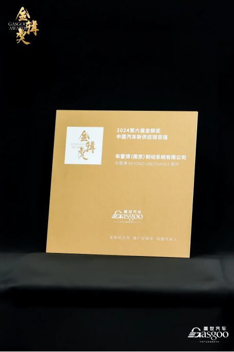 2024年10月24日,布雷博凭借Beyond Greenance套件荣膺2024年度金辑奖“中国汽车新供应链百强”。布雷博中国区董事长兼CEO Bogdan Bereanda先生参加了在上海举行的第