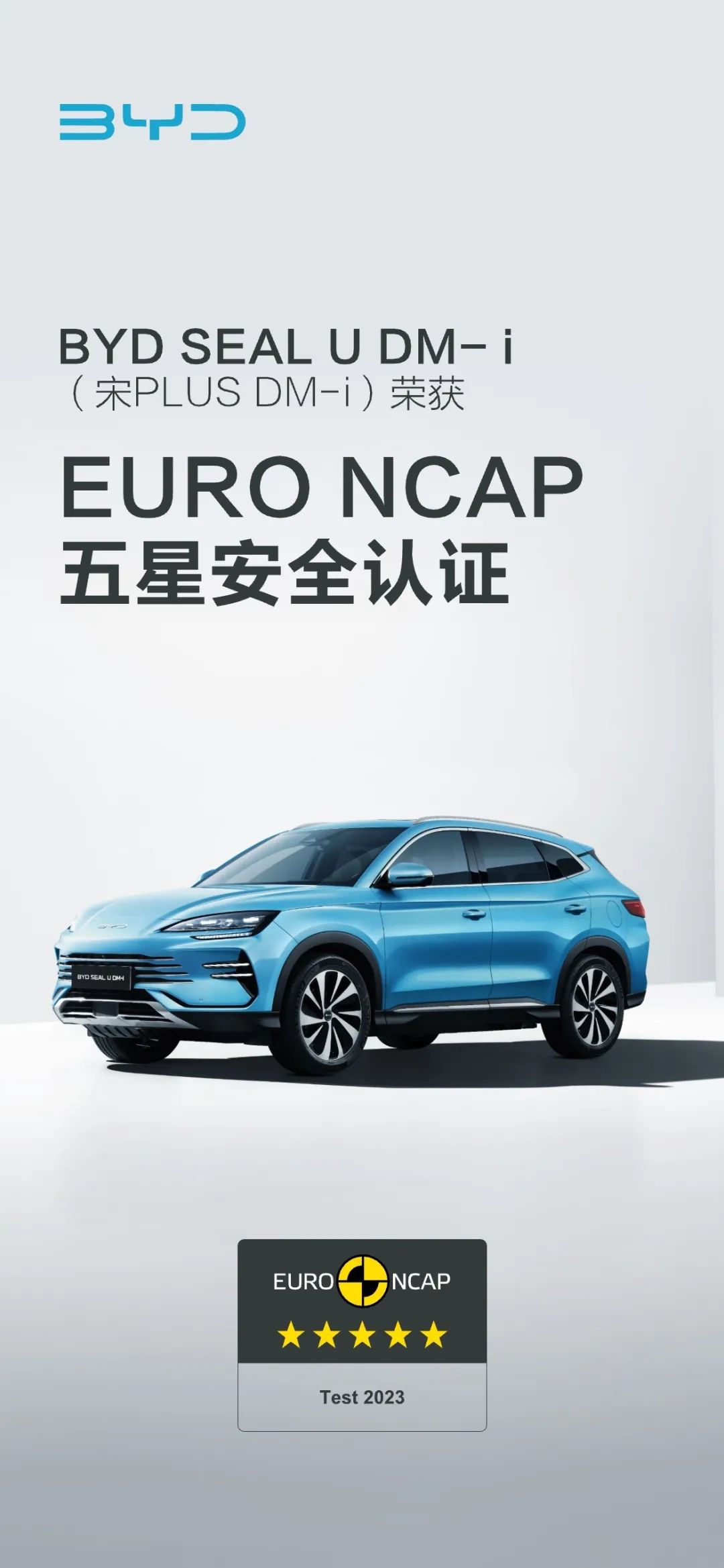 比亚迪SEAL U DM-i (宋PLUS DM-i)荣获EURO NCAP五星安全认证百万销冠 实力诠释卓越安全性能