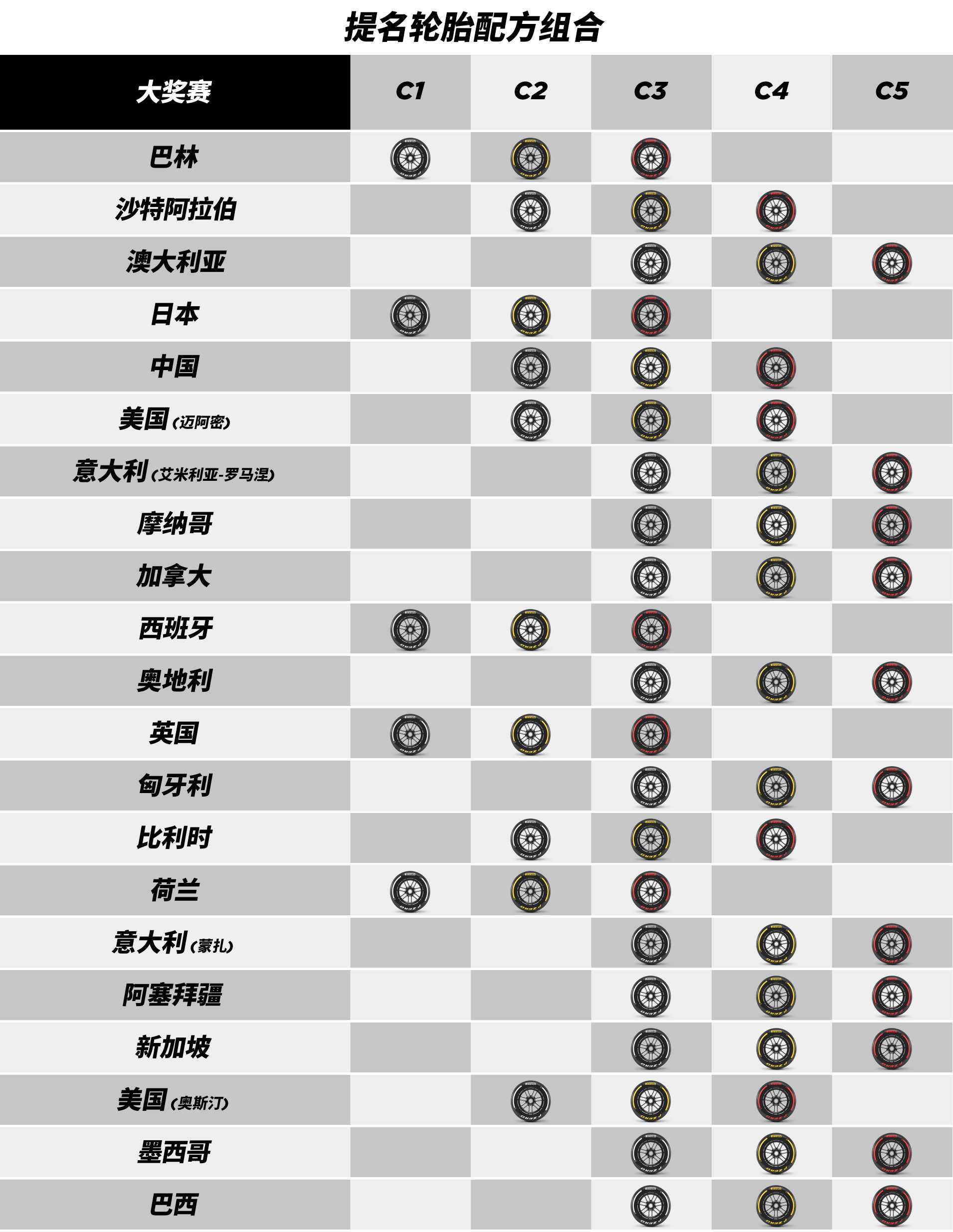 2024赛季F1轮胎配方组合——美国、墨西哥和巴西 美洲站轮胎公布