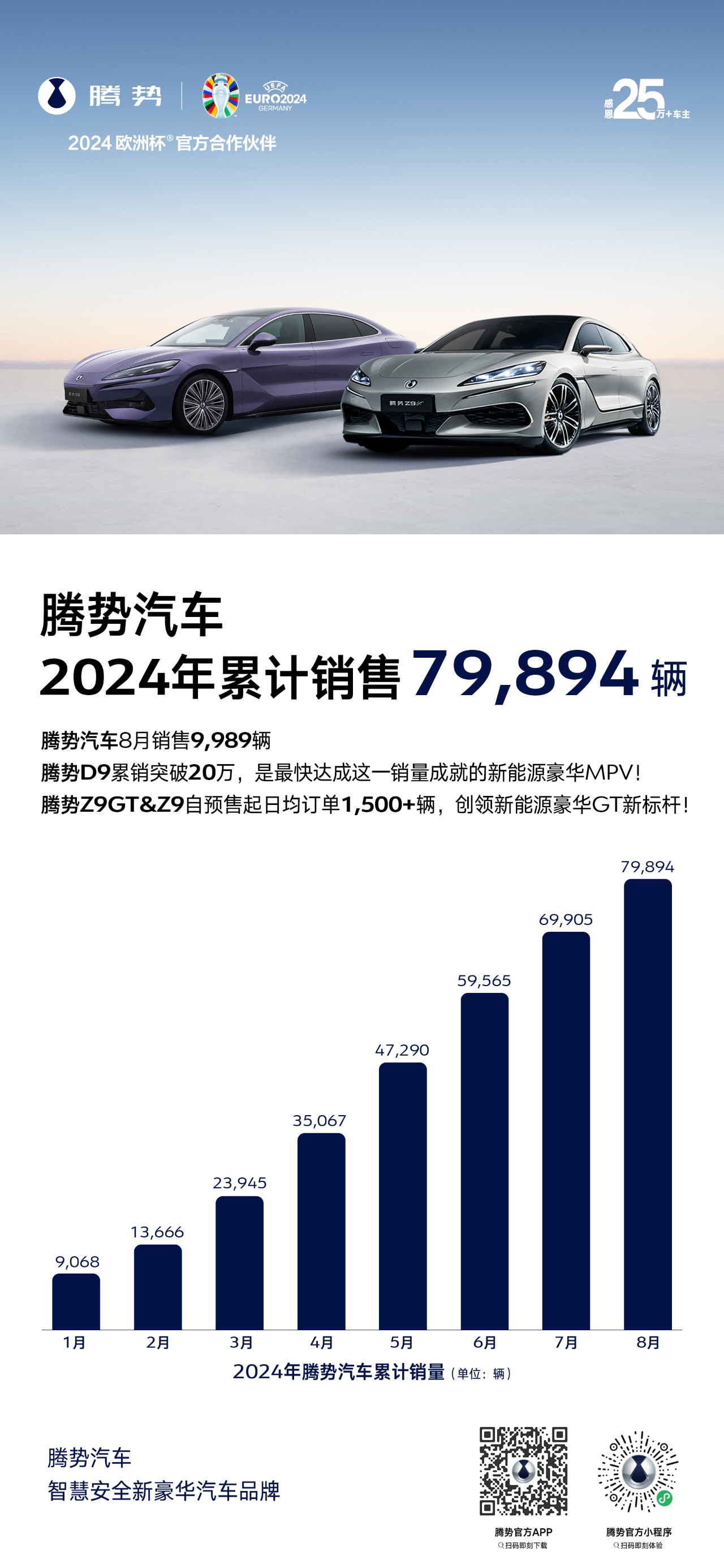 腾势汽车1-8月累计销售79894辆