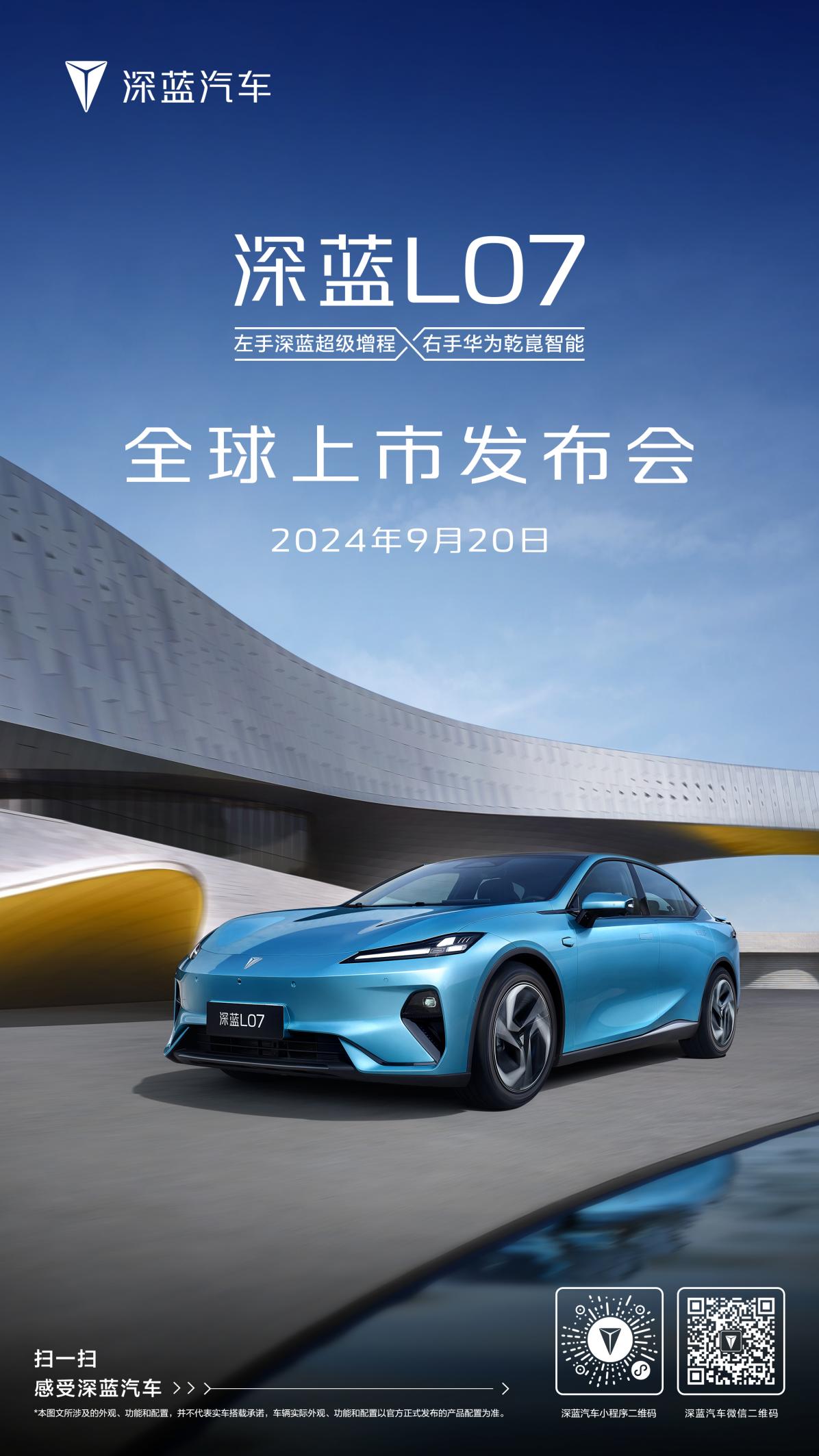 左手深蓝超级增程 右手华为乾崑智能 深蓝L07将于9月20日上市
