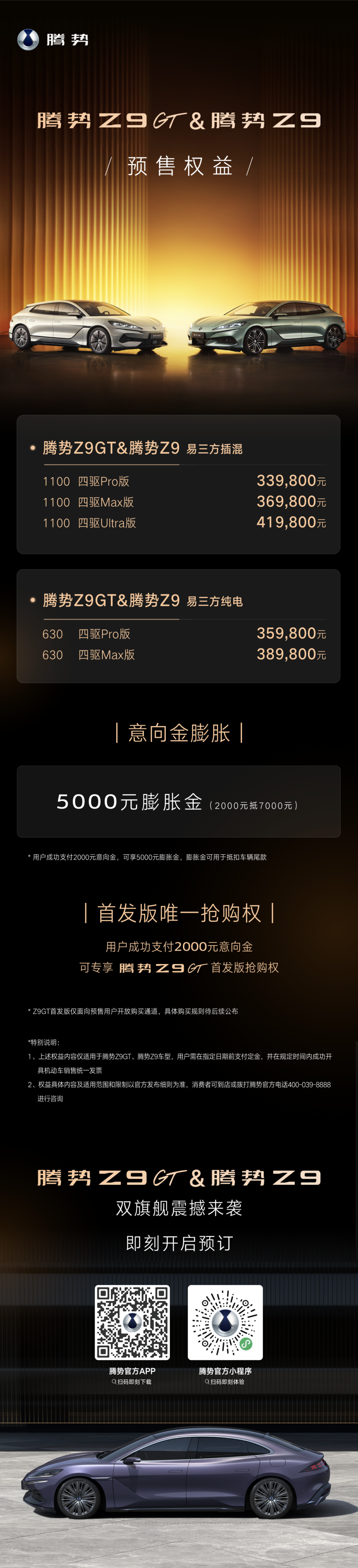8月20日,腾势Z9/Z9GT正式开启预售,预售区间为33.98万元-41.98万元。