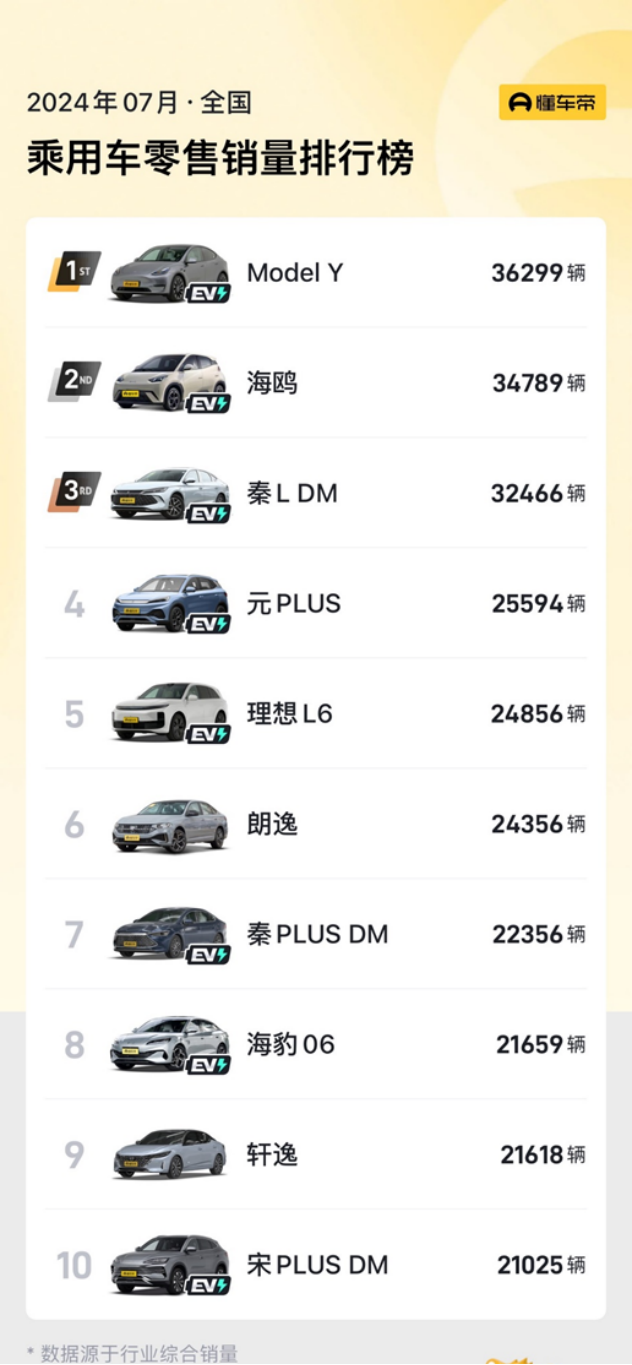 根据乘联会最新发布与专业媒体综合数据显示,特斯拉在中国乘用车市场的销量表现再次刷新记录,Model Y以36299辆的成绩在7月再次夺得全国乘用车销量冠军。 截至目前,特斯拉Model Y已霸气蝉联2