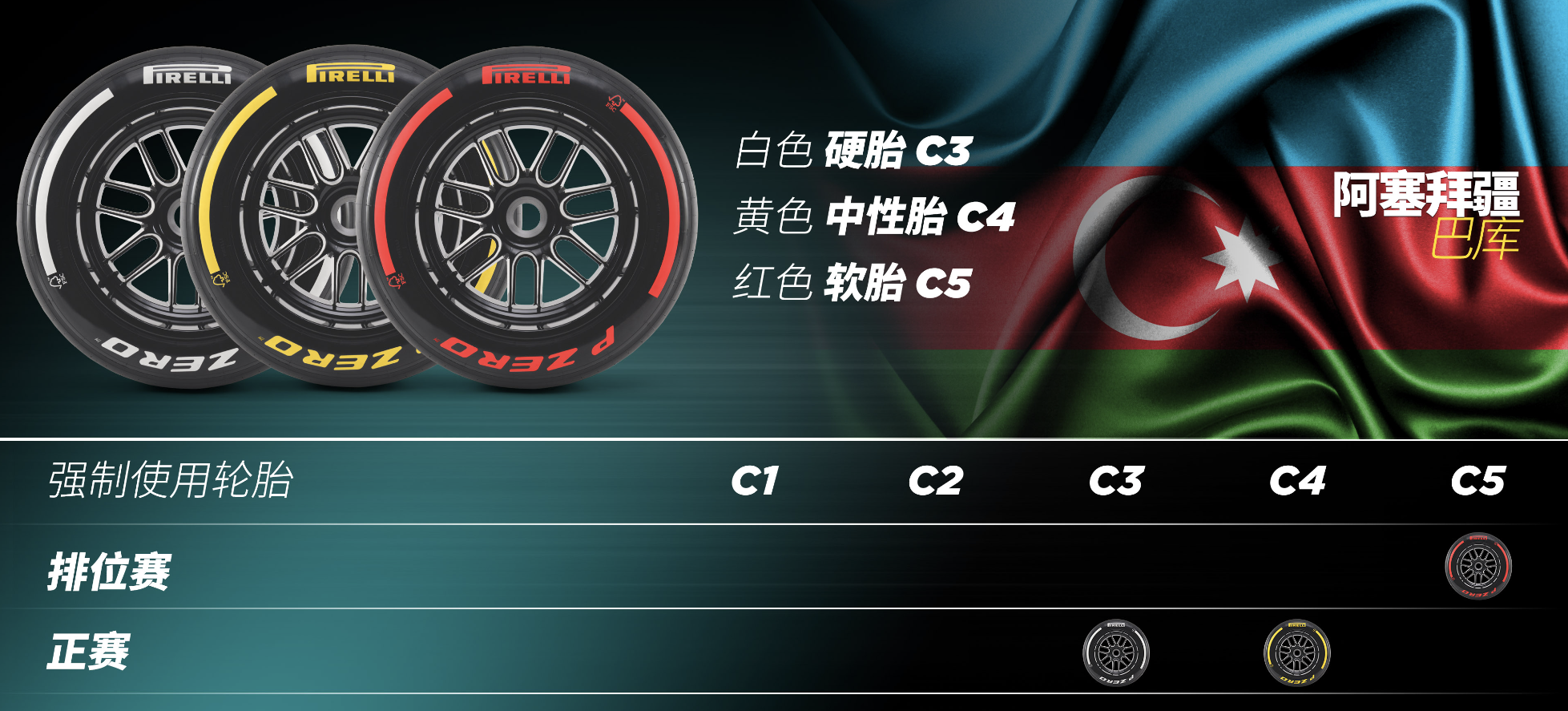F1赛历上9月的比赛,将使用倍耐力轮胎系列中最软的三种配方:这些比赛分别是9月1日的意大利大奖赛、9月15日的阿塞拜疆大奖赛以及9月22日的新加坡大奖赛。在这三场比赛中,都将使用C3 - P Zero